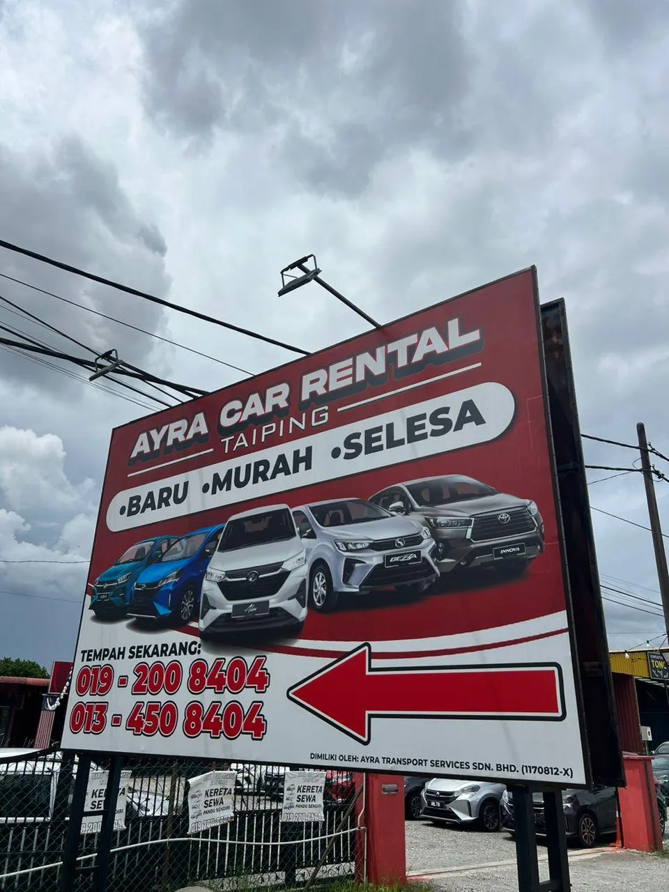 Ayra Transport menyediakan perkhidmatan sewa kereta harian, mingguan dan bulanan di kawasan Kamunting & Taiping, Perak.